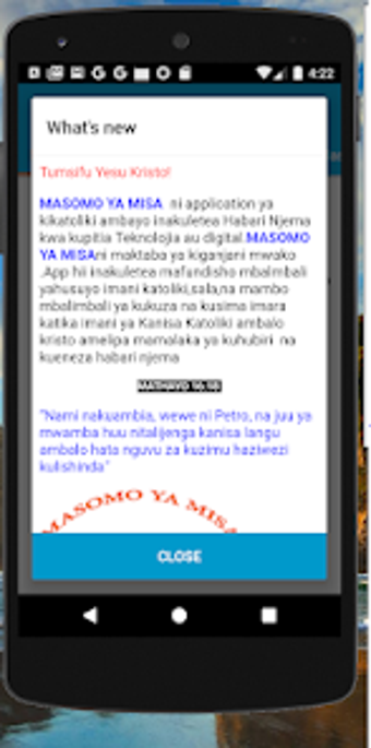 Masomo ya Misa เป็นแอปพลิเคชัน Android ฟรีที่ถูกพัฒนาโดย Mitume Technologies ที่ให้บริการที่หนึ่งเดียวสำหรับทรัพยากรคาทอลิกทั้งหมด แอปนี้มีคุณสมบัติหลากหลายรูปแบบ เช่น การเข้าถึงเพลง รูปภาพ และคำพูดของวันนั้น นอกจากนี้ผู้ใช้สามารถเข้าถึงการสวดมนต์ของนักบุญและทรัพยากรคาทอลิกอื่น ๆ ได้เช่นกัน